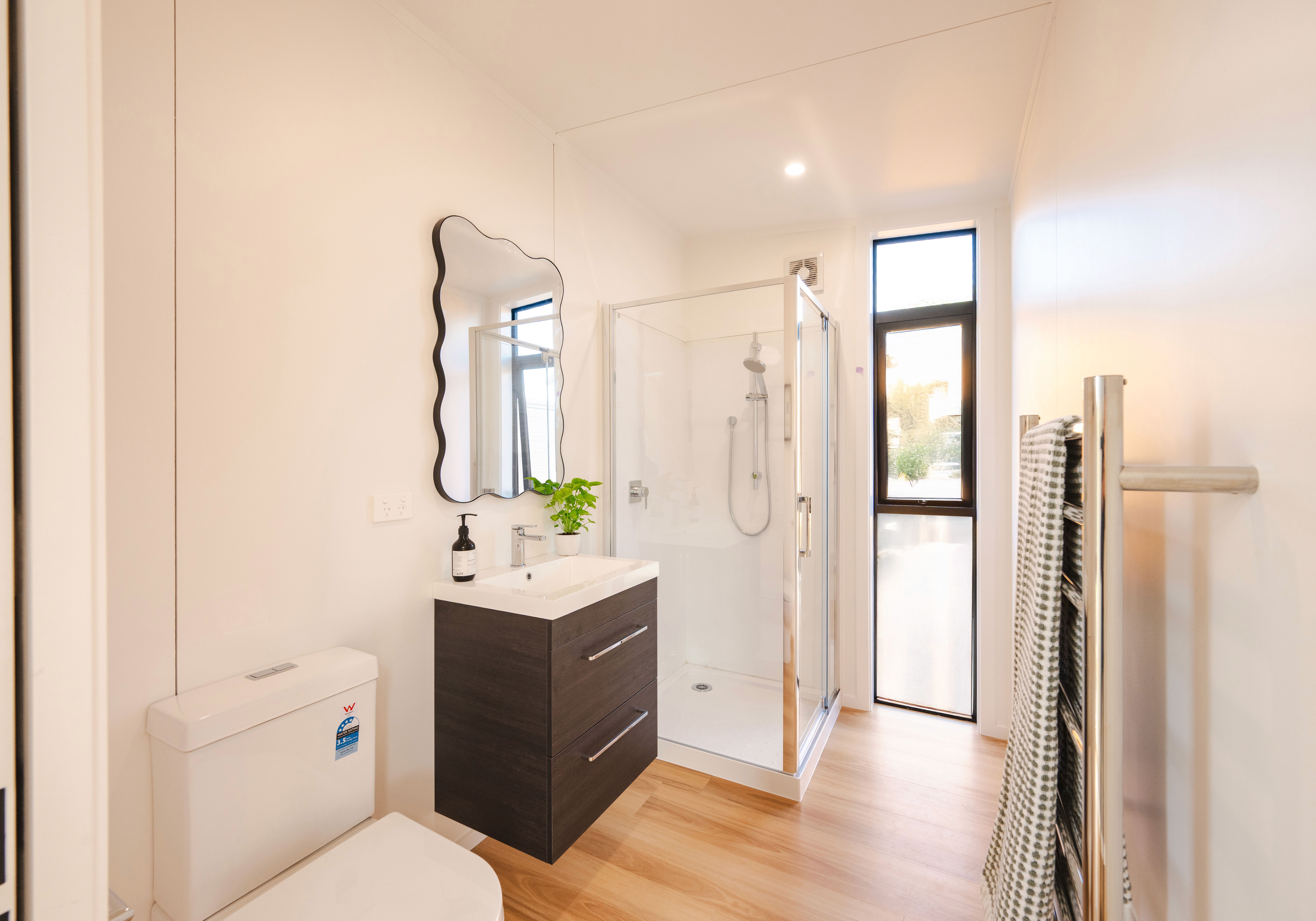 Our new Abel showhome represents the perfect balance of sophisticated design and practical living within 48 square metres. Nestled in the Tasman landscape, this single-level home showcases how thoughtful planning and premium materials can create a space that feels generous, functional, and refined.