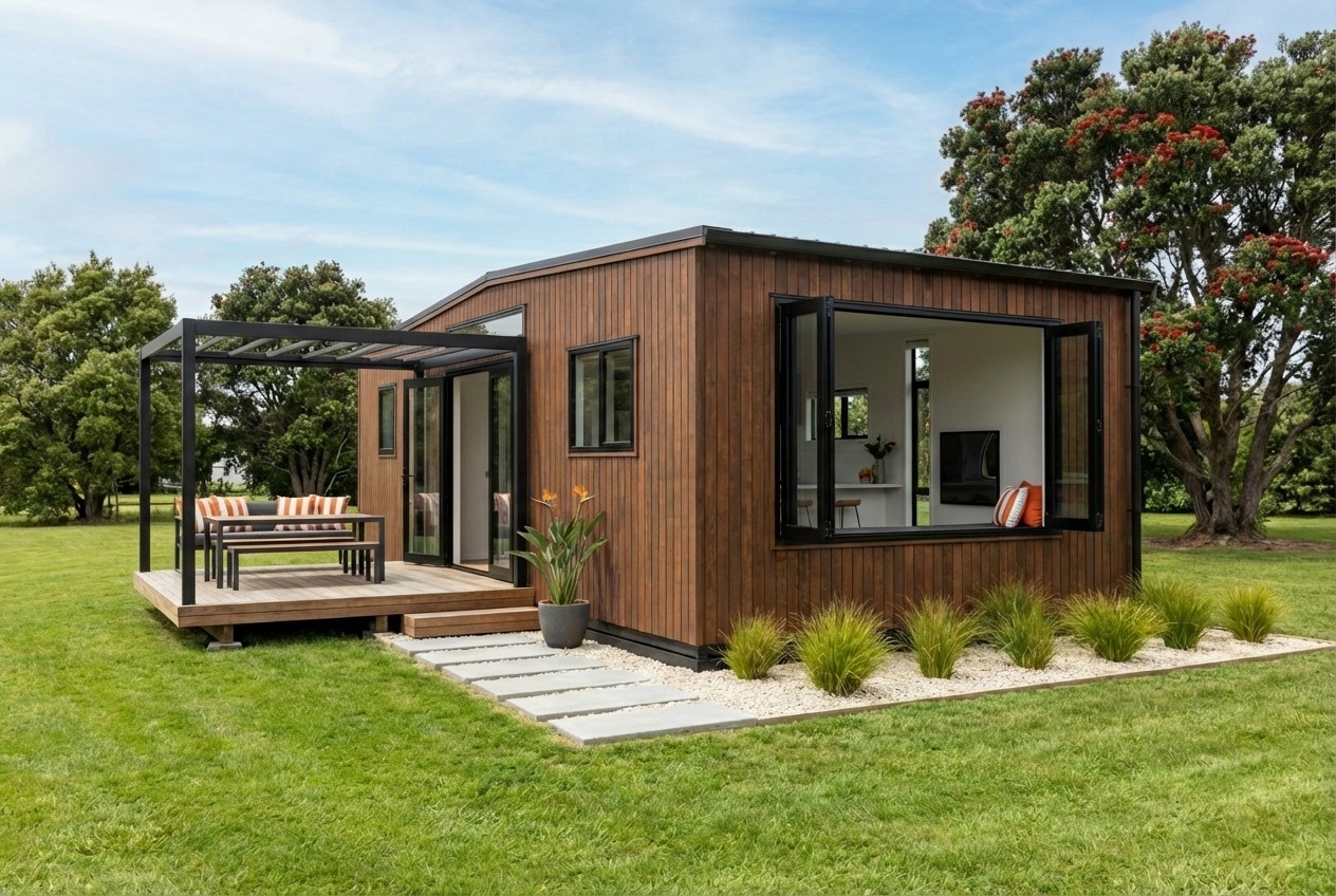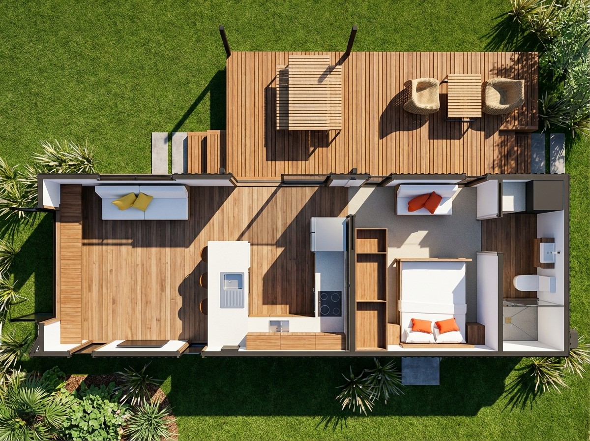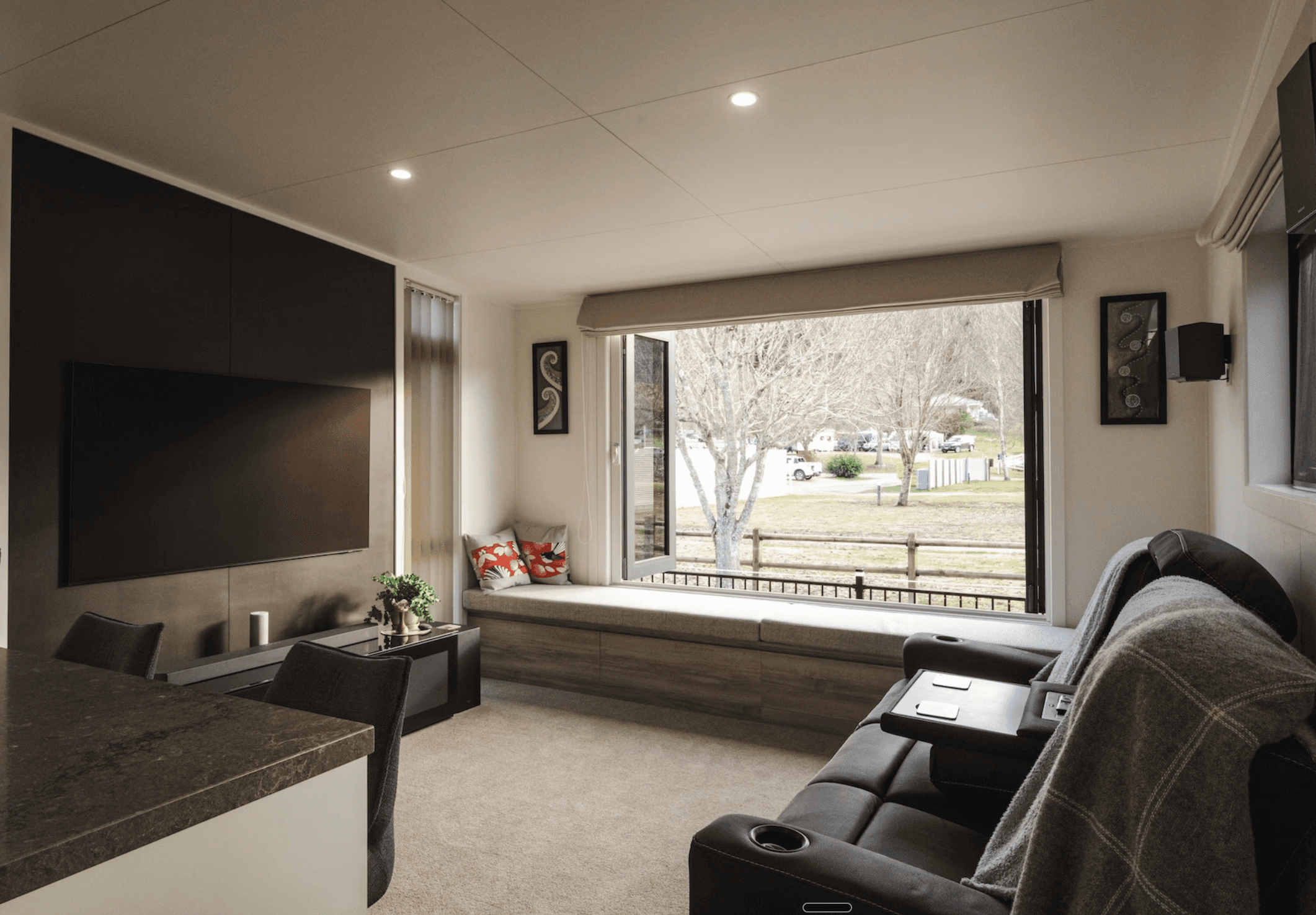 A 48m² single-level home designed for those who love to host. The Mabel features an oversized bespoke kitchen that flows into a generous lounge with huge bifold windows. The spacious master bedroom offers peaceful retreat, while the full-width shower with sliding door adds a touch of luxury. Optional window seating creates the perfect spot to enjoy your surroundings.