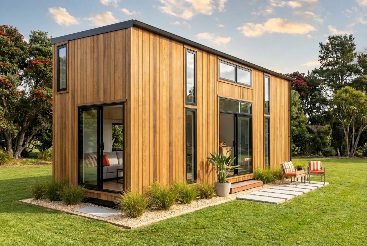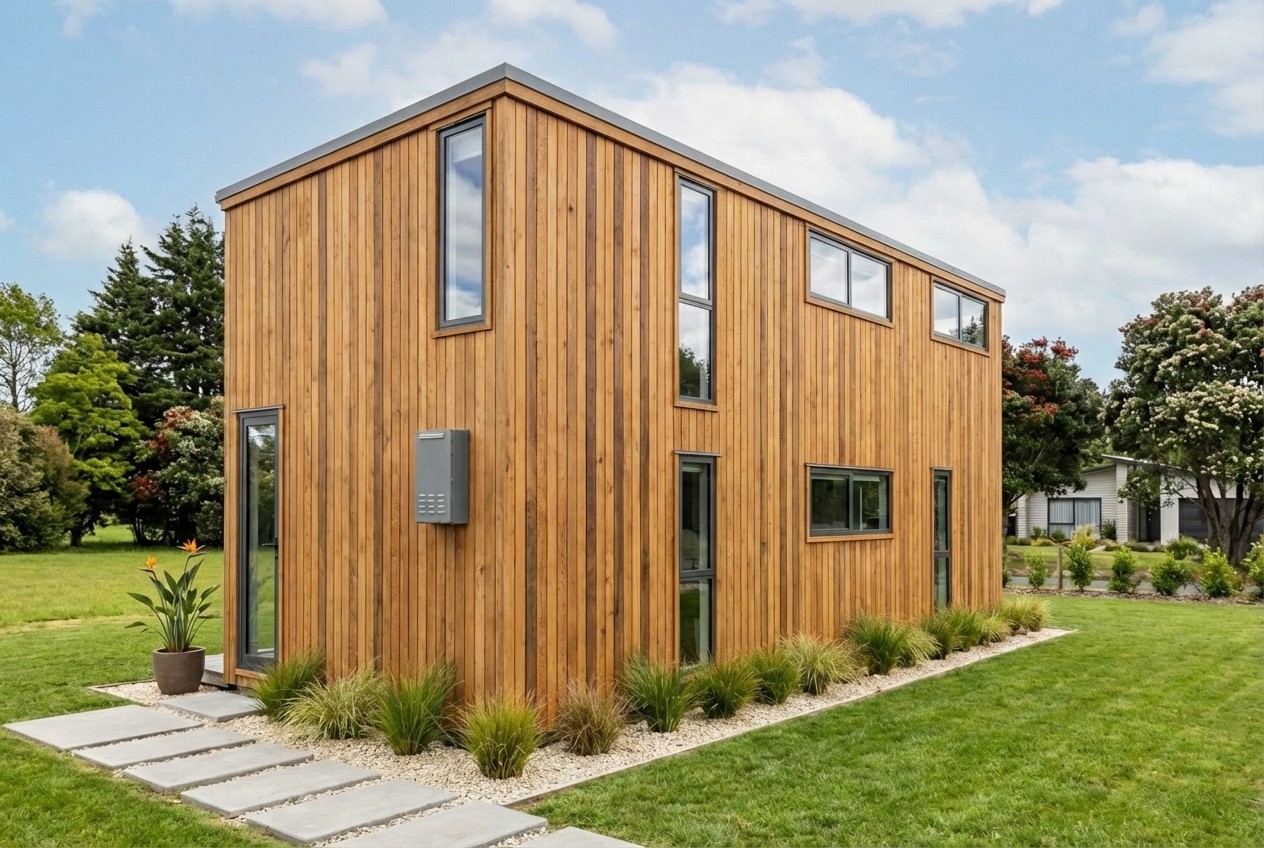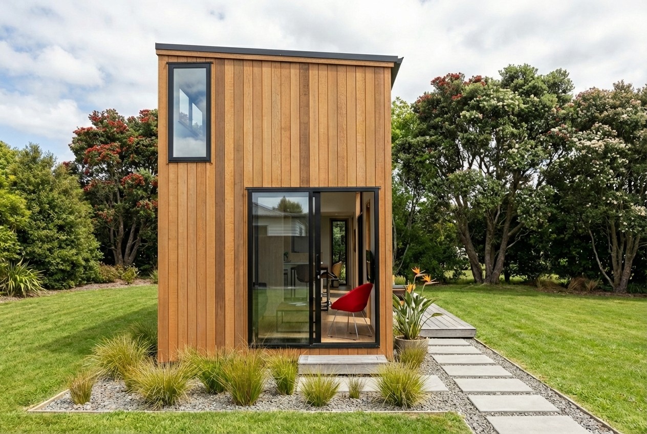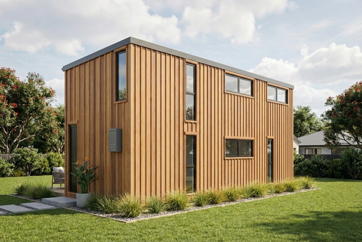 A 50m² two-level home that delivers remarkable space on a compact 30m² footprint. The Mackenzie features two bedrooms, a bespoke kitchen, and a multi-functional room perfect for a home office or hobby space. The second level includes a full wardrobe and study area, with optional slatted screens for privacy. Ideal for those seeking vertical living without compromising on quality.